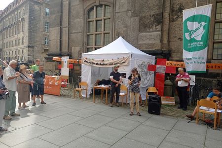 Bericht über die Mahnwache aus Anlass der Atombombenabwürfe auf Hiroshima und Nagasaki vom 6. bis 9. August 2025 in Dresden an der Nordseite der Kreuzkirche