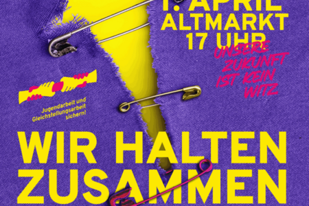 Kundgebung "Unsere Zukunft ist kein Witz - Wir halten zusammen für ein besseres Morgen" am 1. April 2026 von 17 bis 20 Uhr auf dem Altmarkt